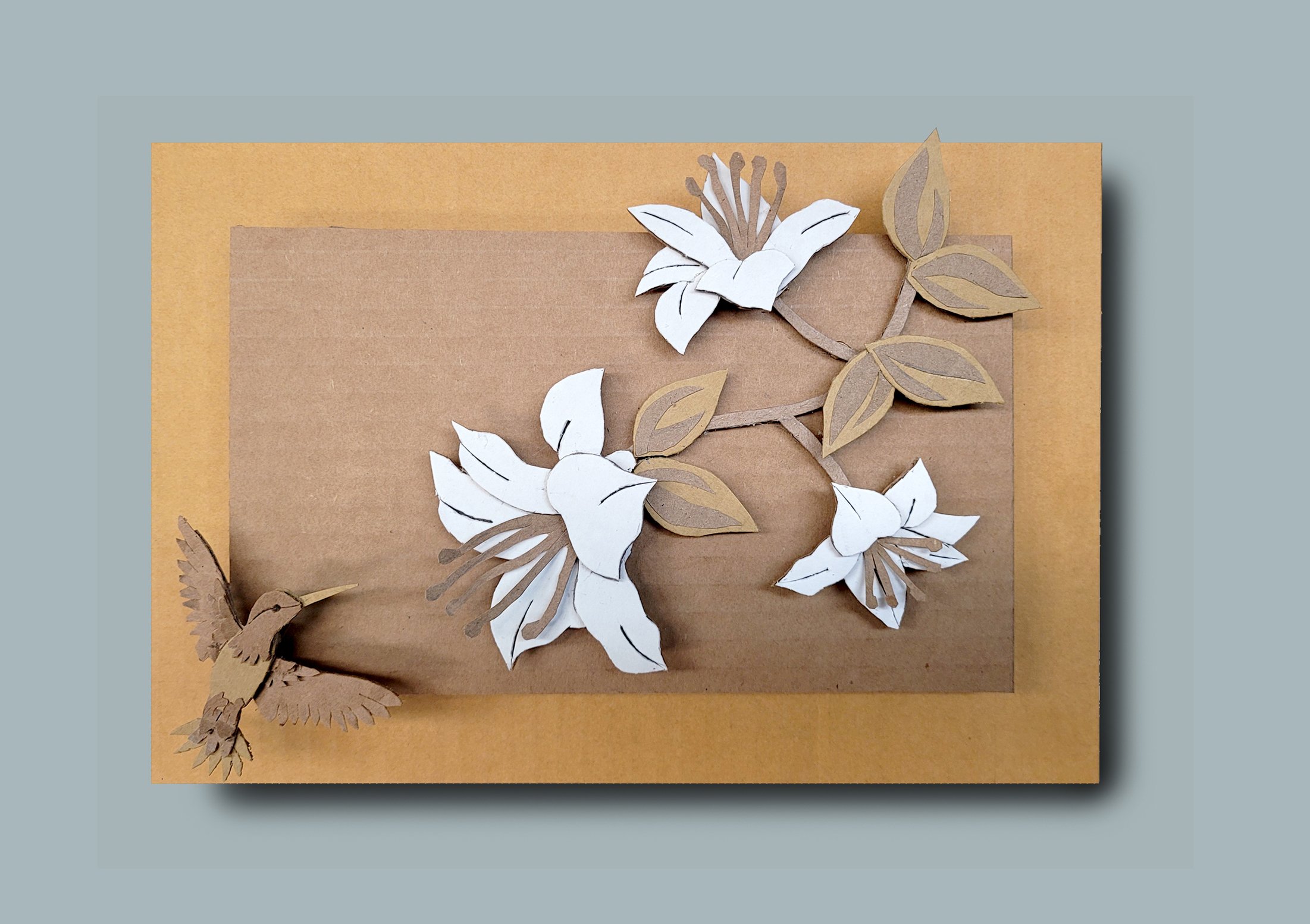 Our society has become an online consumer of products and services. An unfortunate result of this is the amount of waste due to cardboard shipping boxes. Starting in 2020, I started to notice the growing amount of cardboard being thrown out every trash day in our neighborhood. I decided to collect this waste and turn someone’s “Trash” into someone’s “Treasure.” All work I create is made from recycled corrugated cardboard.